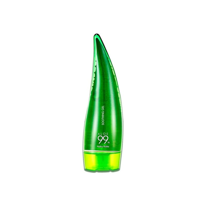 Holika Holika - Aloe 99% Shoothing Gel - kojący żel z aloesem o działaniu regenerującym i przyspieszającym gojenie się ran. Zapewnia skuteczne nawilżenie głębszych warstw naskórka i zapobiega jego wysuszeniu. Zawiera sok z liści aloesu posiadający właściwości łagodzące i kojące, a także ekstrakt z liści wąkroty azjatyckiej działający przeciwzapalnie. Zawarty ekstrakt z liści pędów bambusa wykazuje działa antyoksydacyjne, a ekstrakt z arbuza zapewnia miękkość skórze. Żel jest hipoalergiczny, nie zawiera parabenów, olejów mineralnych, sztucznych barwników oraz składników pochodzenia zwierzęcego.